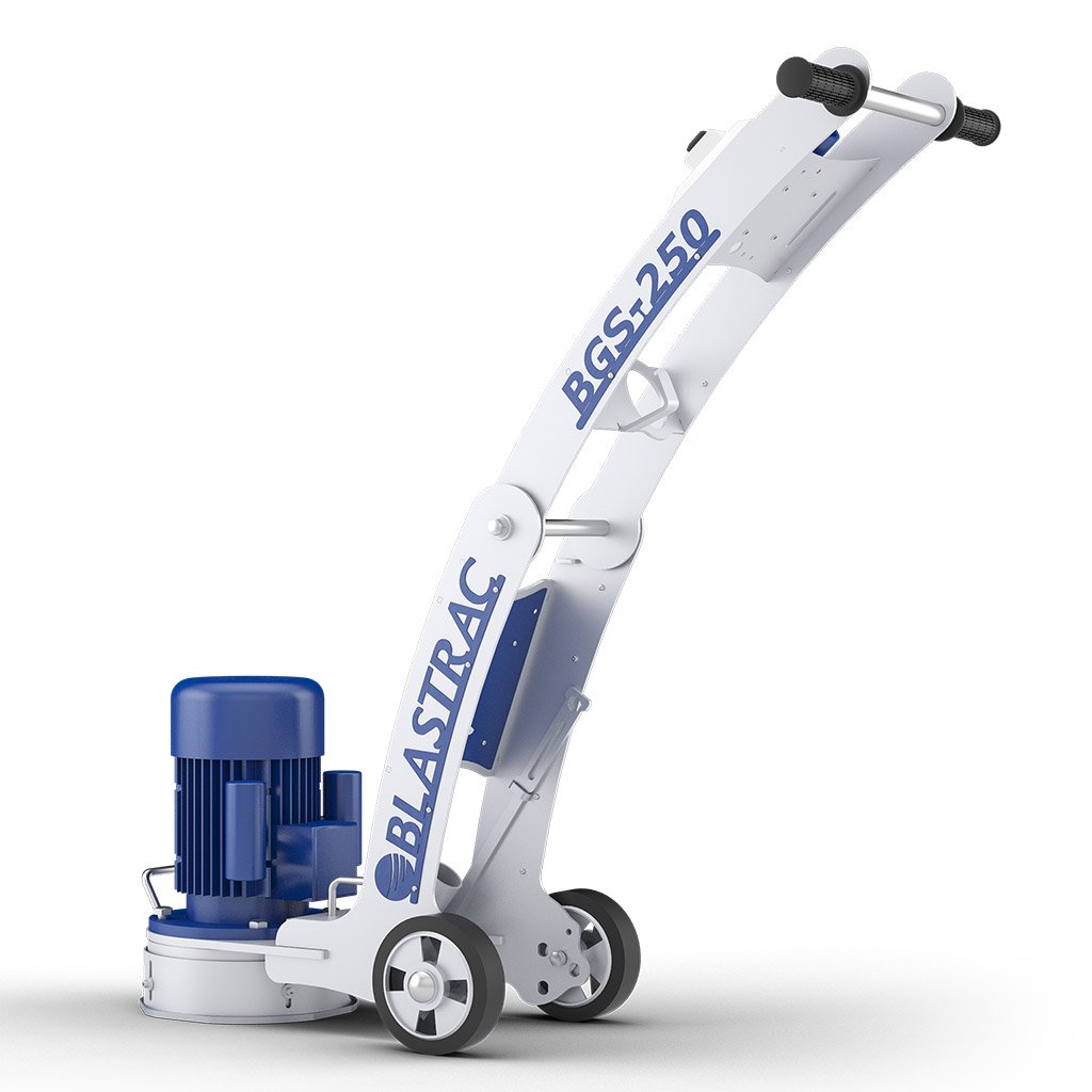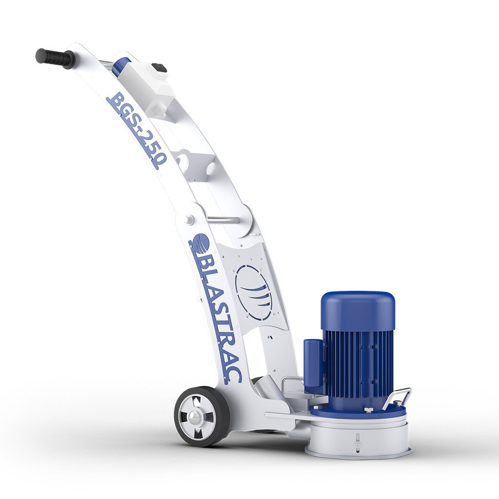 The Blastrac BGS-250 is a single-disc concrete grinder especially designed for small to medium horizontal surface preparation applications. The BGS-250 has an adjustable grinding depth and is operational friendly and comfortable to use with low vibrations.