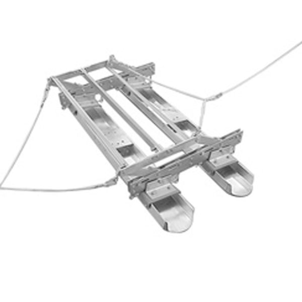 A handleless Bull Float system that is pulled from side to side with ropes.  The Bullfrog Trac II gives you an even and consistent floated surface no matter which way you pull it.  No handle weight to affect the slab and our adjustable mechanism automatically tilts the head as you begin pulling.  Especially effective in confined areas where handles are clumsy and awkward.  Great for pours of 24 feet or more!  Available in 4′, 6′, and 8′ widths (Custom sizes also available).  Bullfrog Trac II comes with 1-50′ 3/8″ nylon rope set and is designed to be used on 6″ wide C-channel floats.