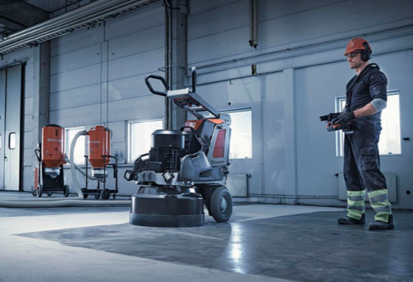 The PG 690 RC is a remote controlled, powerful floor grinder but still compact enough to pass through a standard door (total width: 26 in / 67 cm). The remote control sets the operator free to manage hoses and cables while still grinding, for up to 40% higher productivity. The motorised drive also simplifies transportation. This is the go-to-choice for most grinding jobs, both industrial and commercial. The planetary drive system and the improved, Husqvarna-unique Dual Drive Technology™ deliver excellent grinding performance. Adjustable weights for extra grinding pressure and LED lights are optional. Suitable for all applications: floor prep, grinding and polishing. A high performing machine for the HiPERFLOOR® concrete polishing system. To maximise reliability and reduce maintenance, the vital components of the PG 690 are protected against dust and slurry inside the hermetically sealed grinding head and electrical cabinet.