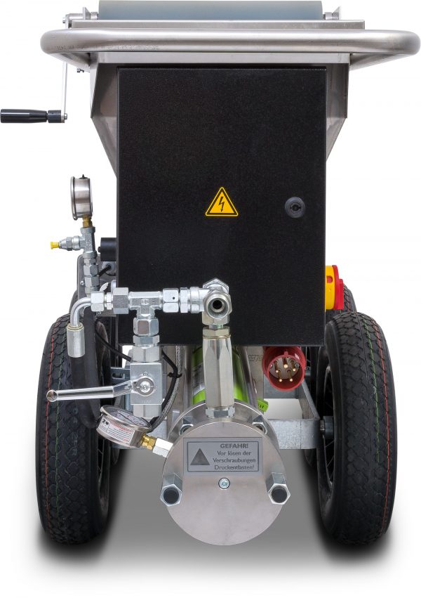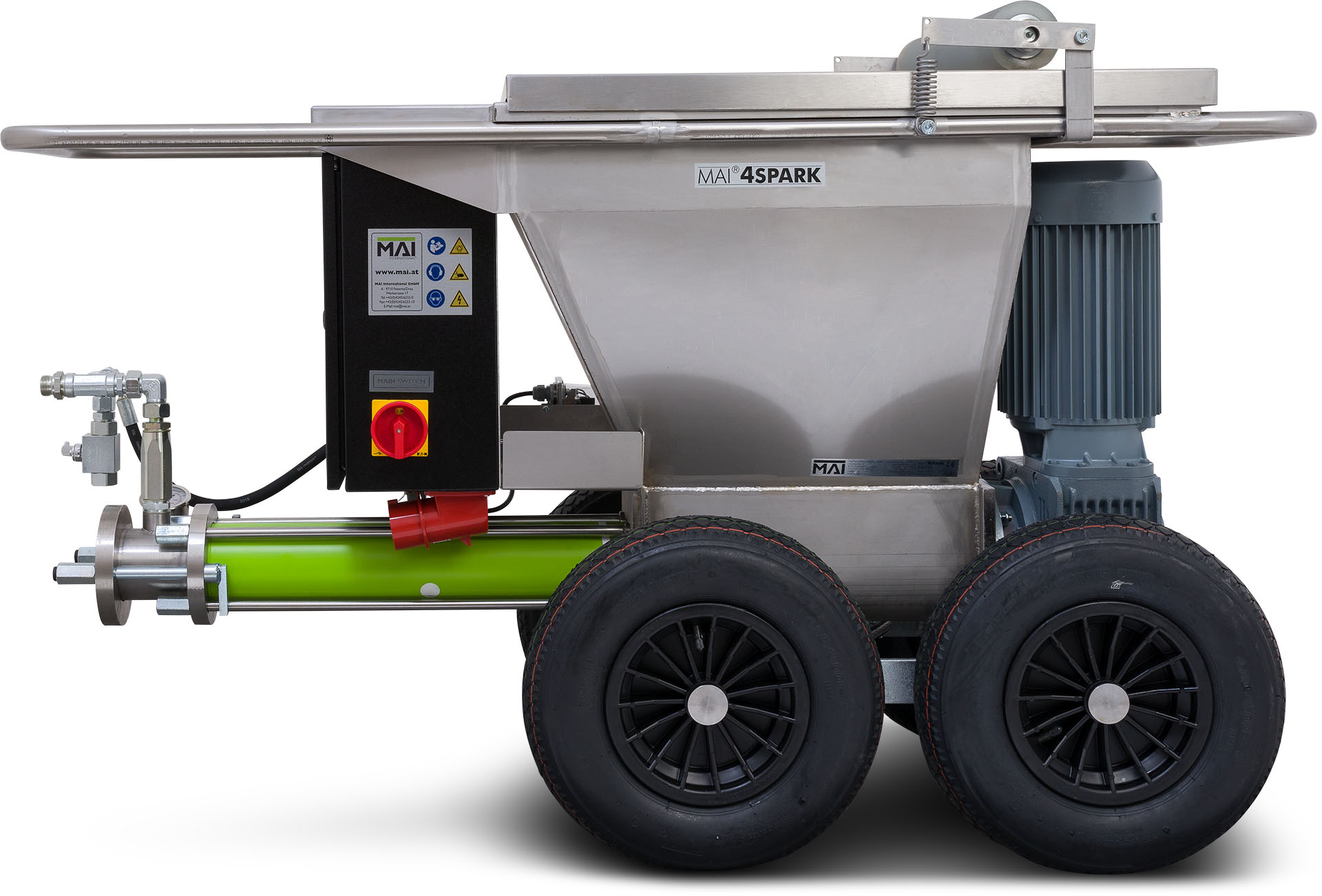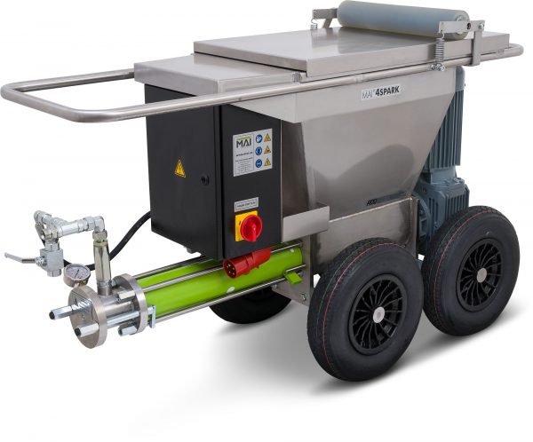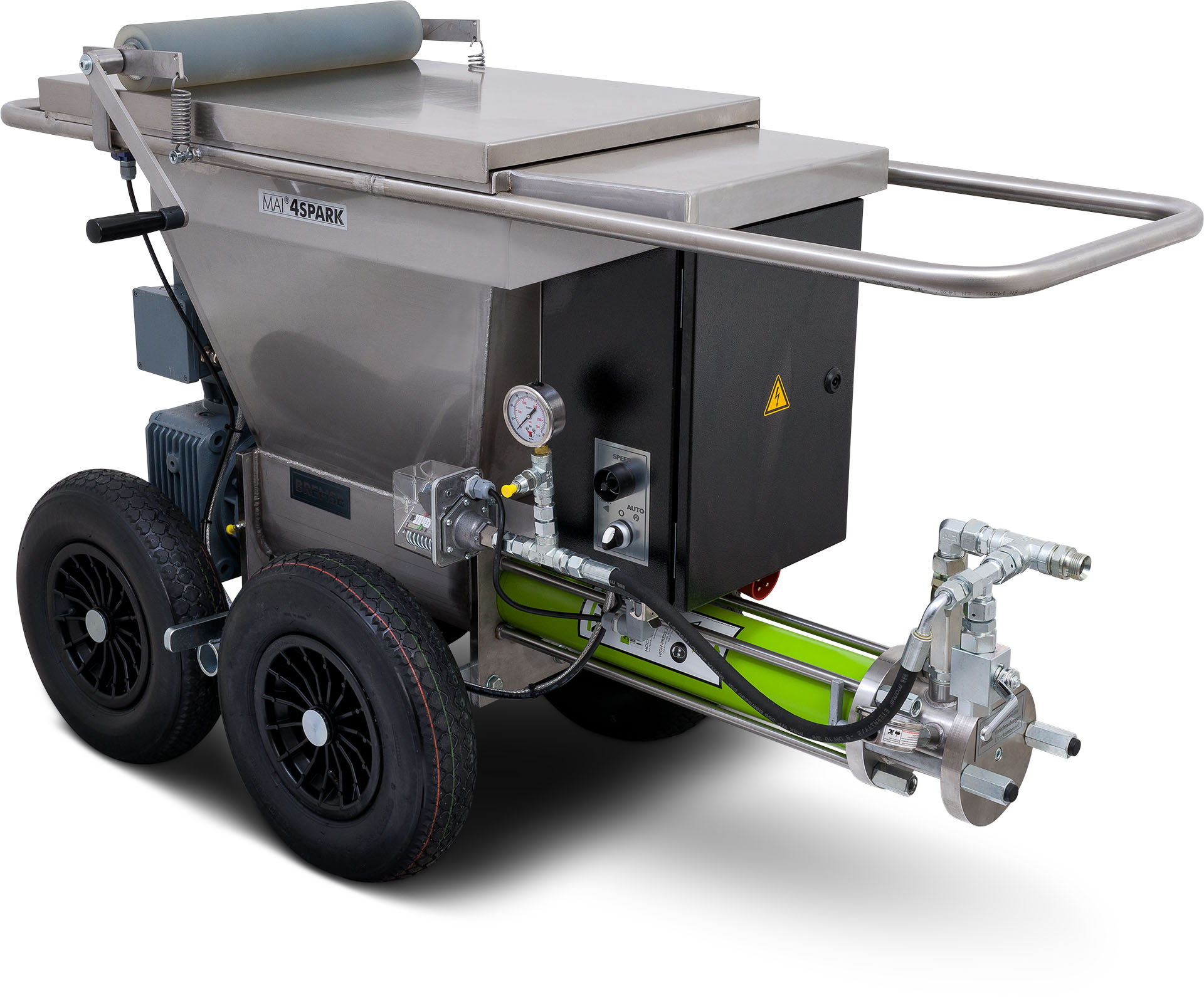 This electric-powered high-performance airless sprayer is ideal for fine filling compounds and pre-mixed coating materials. With an adjustable operating pressure from 50 to 140 bar, the MAI®4SPARK can be used to effortlessly apply finely dispersed material on ceilings and walls at breath-taking speed, even on multiple floors. Handling the airless sprayer is effortless thanks to balloon tires that come as standard.