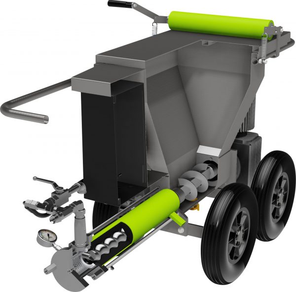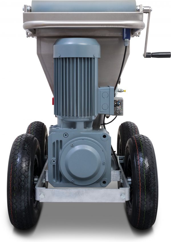 A continuously variable delivery rate is aided by the sack mangle with a movable lid on the 80-liter material hopper, which prevents dehydration and contamination.