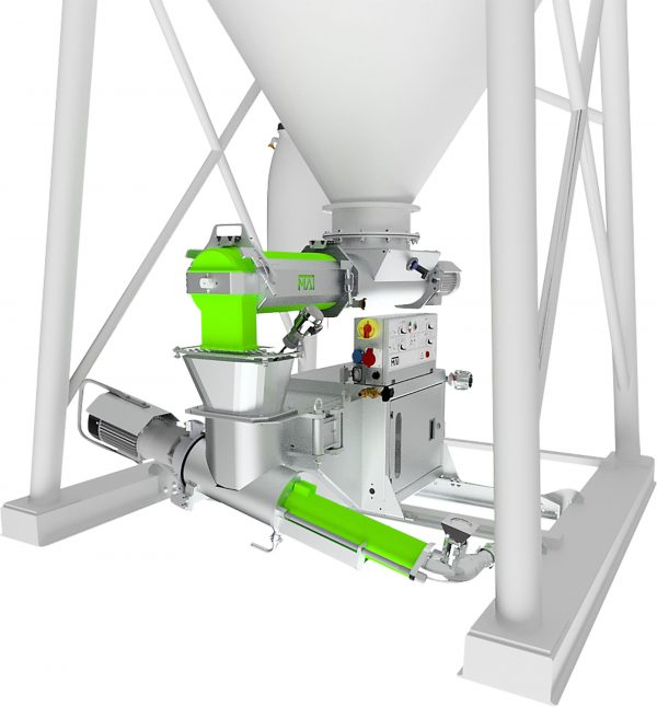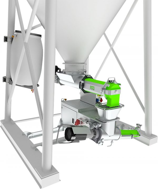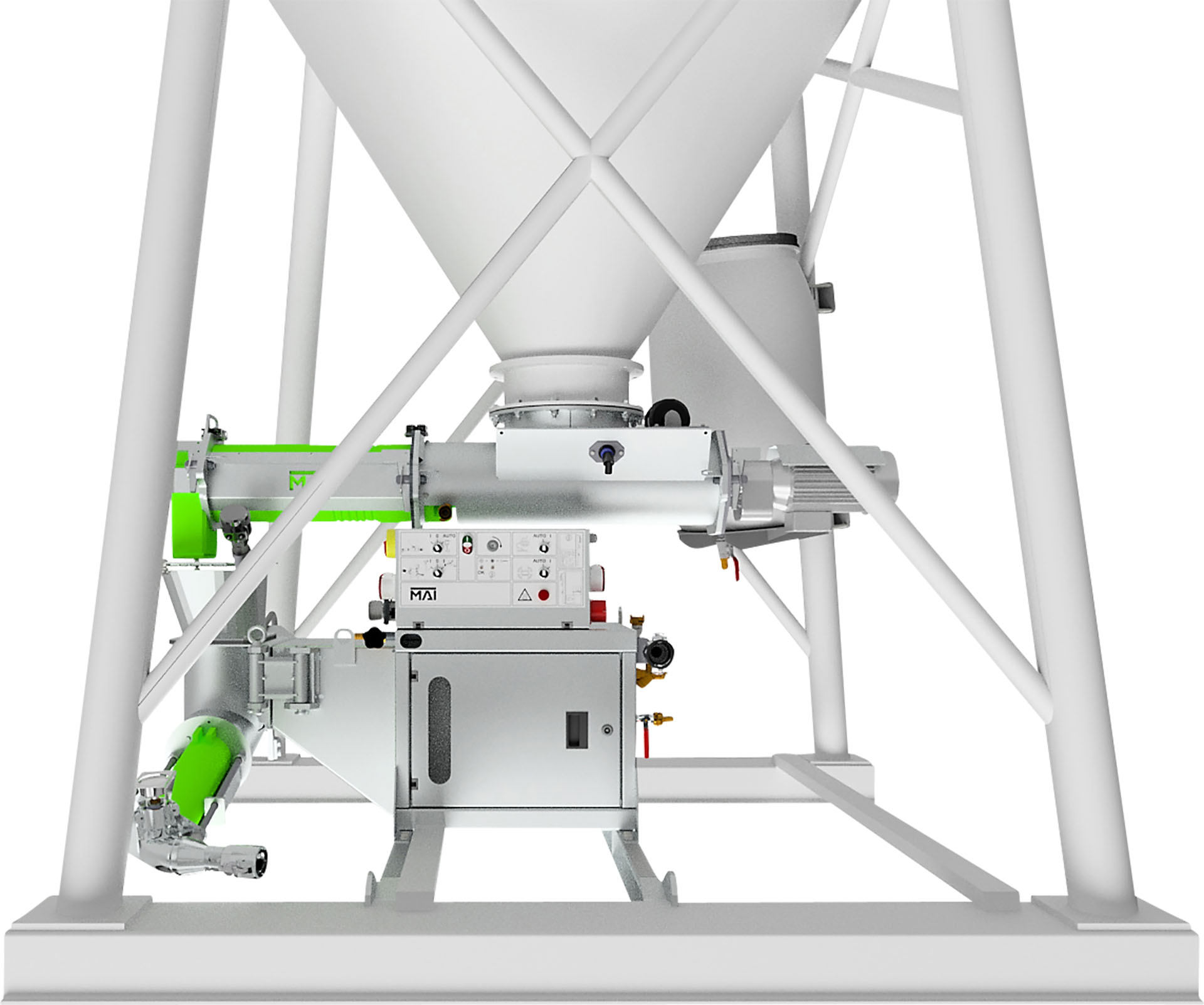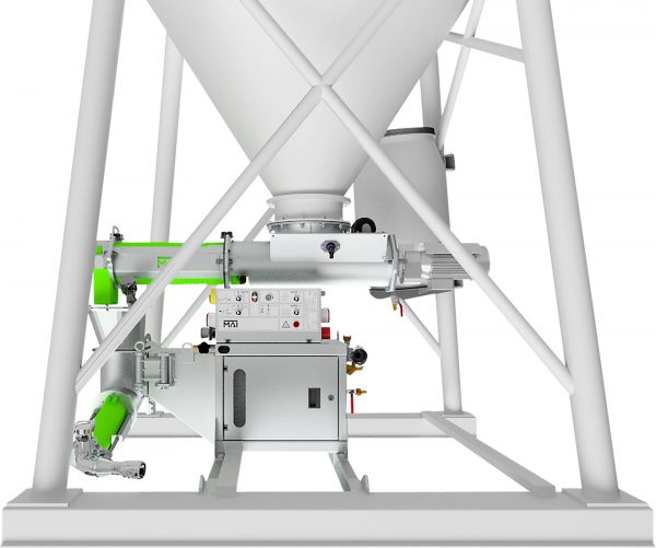 The MAI®COMP is a compact silo mixing pump mounted on the silo container. It has a pumping capacity of between 40 and 100 l/min (with a nominal mortar hose diameter of 50mm and a maximum distance of 50m) and a grain size of up to a maximum of 6 mm for a silo flange diameter of 350 mm.