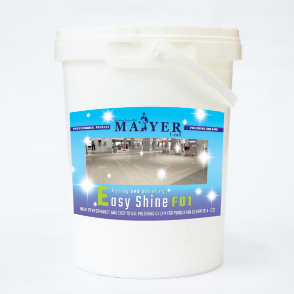 Easy Shine F01 is an easy to use, water based, polishing cream. Its special formula allows to re-polish all siliceous surfaces, such as Granites, Porcelain Stoneware and Quartz, usually difficult to polish maintain. The product replaces with excellent performances the final phase of mechanical polishing, replacing different grains, offering the material a higher brightness degree compared to the one that can be obtained by a diamond grinding, saving time and energy.